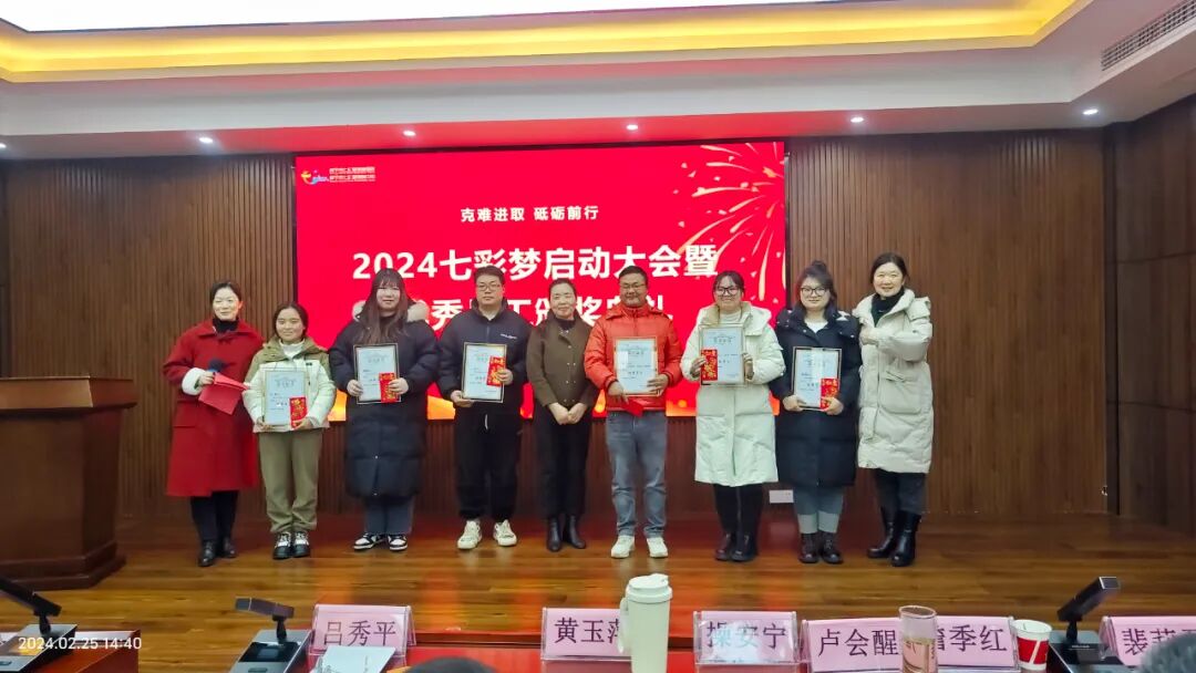 在充满活力的2024年,我们迎来了一个特别的日子,2月25日七彩梦动员大会暨优秀员工颁奖典礼在咸宁高新区党员职工服务中心隆重举行。这次大会不仅是对过去一年七彩梦团队辛勤付出的肯定,更是对未来发展的展望与动员。