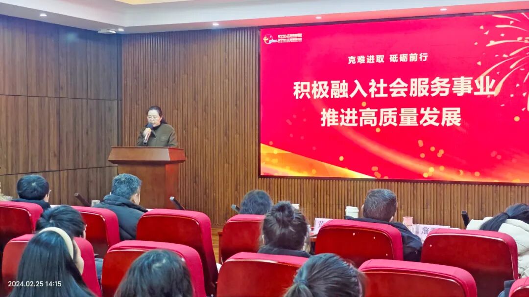 吕秀平院长首先发表了激励人心的讲话,她谈到了“克难进取,砥砺前行”的重要性,并分享了如何积极融入社会服务事业,推动高质量发展的战略思考。吕院长的讲话为全场定下了积极向上的基调,激发了大家在新的一年里继续努力、不断进取的决心。